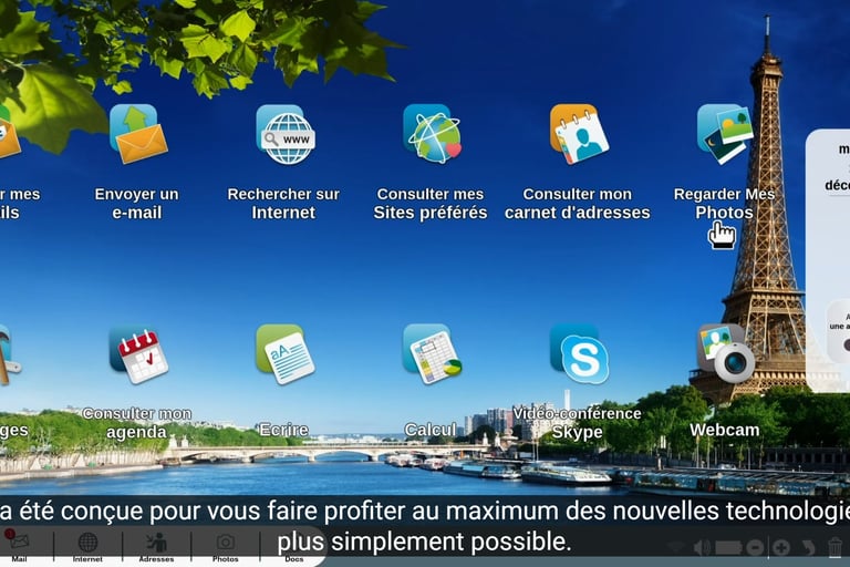 La force d’un Ordissimo réside dans son interface. Développé sur une base Linux, son système d’exploitation offre la possibilité à l’utilisateur d’accéder à toutes les fonctionnalités de son ordinateur, en moins de trois clics.